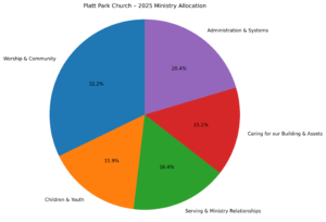 - The largest portion of our resources supported Worship & Community (Sunday worship, pastoral care, teaching, communications, & community events)